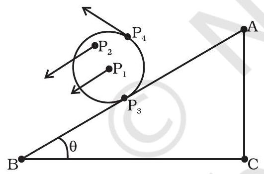चित्र 6.1 एक ढलान के नीचे ब्लॉक की ट्रांसलेशनल (फिसलने वाली) गति (ब्लॉक का कोई भी बिंदु जैसे P1 या P2 किसी भी क्षण एक समान वेग से चलता है।)
