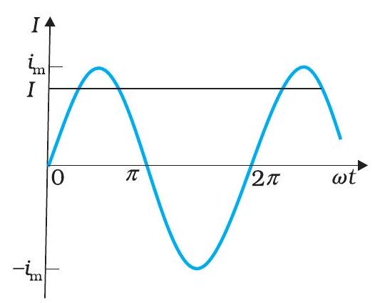चित्र 7.3 rms धारा $I$ शीर्ष धारा $i_{m}$ से $I=i_{m} / \sqrt{2}=0.707 i_{m}$ द्वारा संबंधित है।