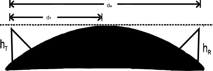 The distance to the horizon $d_T=\sqrt{2Rh_T}$ $d_M=\sqrt{2Rh_T} + \sqrt{2Rh_R} + \frac{h_T h_R}{\sqrt{2Rh_T} + \sqrt{2Rh_R}}$