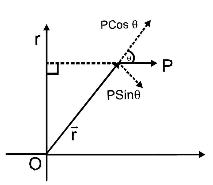 $\vec{L} =\vec{r} \times \vec{P} \quad \Rightarrow \quad L=rp \sin \theta$