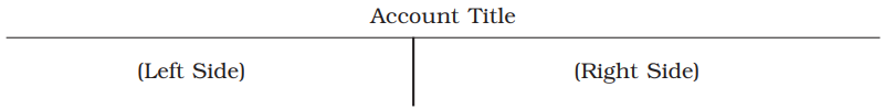 As already stated every transaction involves give and take aspect. In double entry accounting, every transaction affects and is recorded in at least two accounts. When recording each transaction, the total amount debited must equal to the total amount credited. In accounting, the terms - debit and credit indicate whether the transactions are to be recorded on the left hand side or right hand side of the account. In its simplest form, an account looks like the letter $\mathbf{T}$. Because of its shape, this simple form called a T-account (refer figure 3.4). Notice that the $\mathrm{T}$ format has a left side and a right side for recording increases and decreases in the item. This helps in ascertaining the ultimate position of each item at the end of an accounting period. For example, if it is an account of a customer all goods sold shall appear on the left (debit) side of customer’s account and all payments received on the right side. The difference between the totals of the two sides called balance shall reflect the amount due to the customer. In a $\mathbf{T}$ account, the left side is called debit (often abbreviated as Dr.) and the right side is known as credit (often abbreviated as Cr.). To