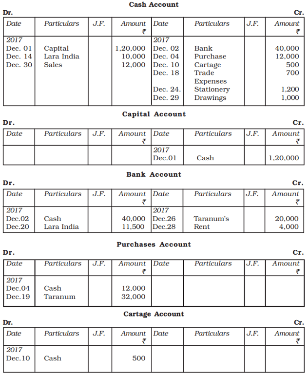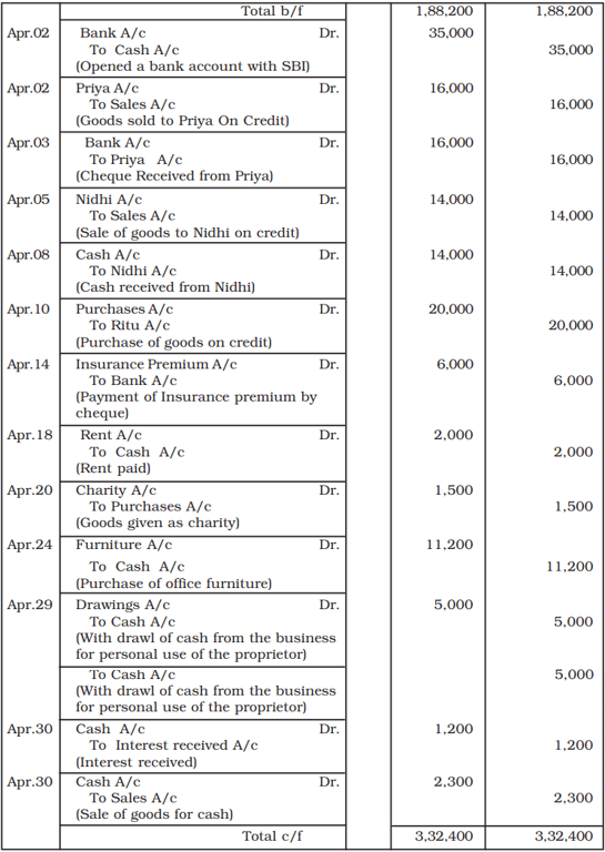 | $4.$ | Bought goods on credit from Himani | 40,000 |