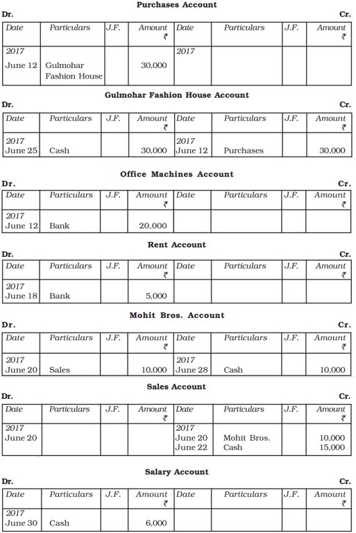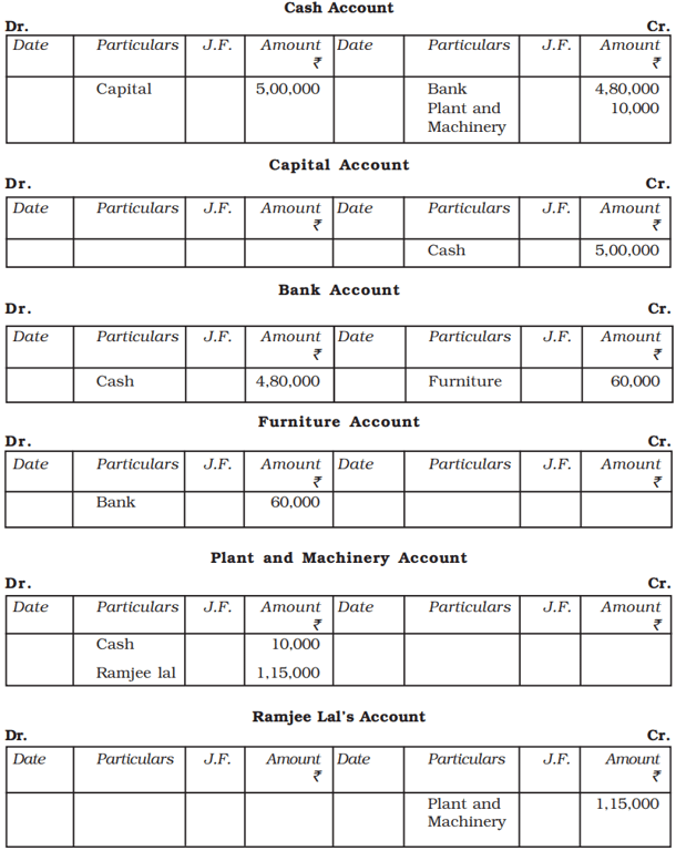 Analysis of Transaction : This transaction increases plant and machinery (assets) by ₹ 1,25,000, decreases cash by ₹ 10,000 and increases liabilities (M/s Ramjee Lal as creditor) by ₹ 1,15,000. Increases in assets are debited whereas decreases in assets are credited. On the other hand increases in liabilities are credited. Therefore, record the transaction with debit to furniture account and with credit to Cash and Ramjee Lal’s account.