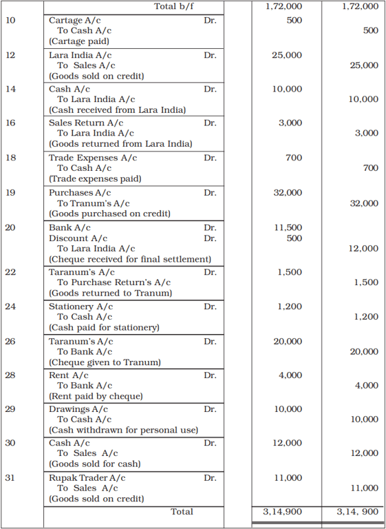 | $26.$ | Cheque received from Goyal Traders ….. | 31,500 |