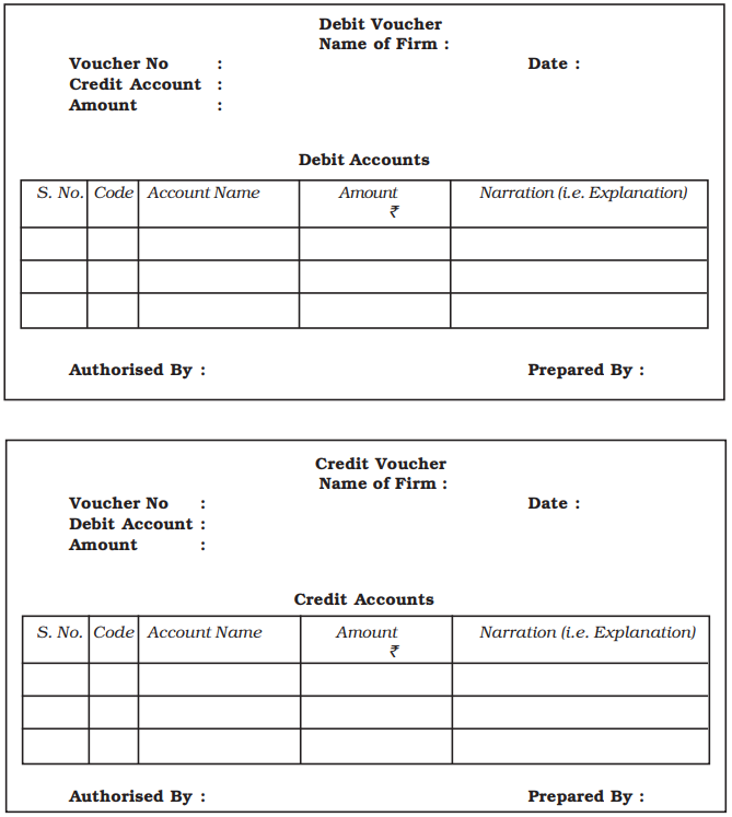 Accounting vouchers may be classified as cash vouchers, debit vouchers, credit vouchers, journal vouchers, etc. There is no set format of accounting vouchers. A specimen of a simple transaction voucher is used in practice is shown in figure 3.1.
