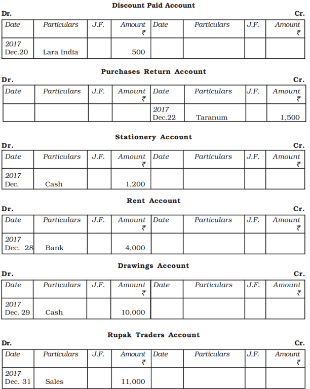 | $20.$ | Cheque given to Ritika | 28,000 |