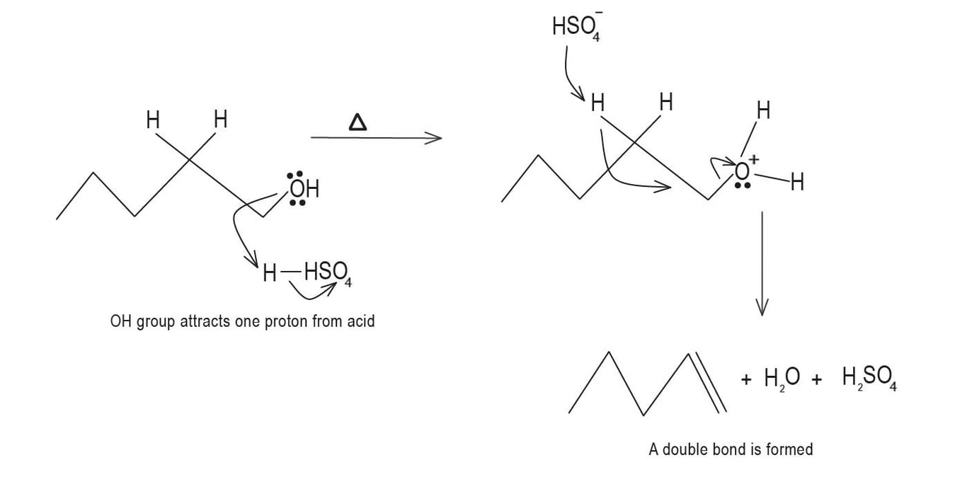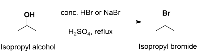 $ R - OH \xrightarrow{H^{\oplus}} R - \stackrel{\oplus}{O} H_{2} \xrightarrow{-H_{2} O} \stackrel{\oplus}{R} \xrightarrow{X^{\ominus}} R-X $ (R may rearrange)