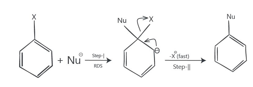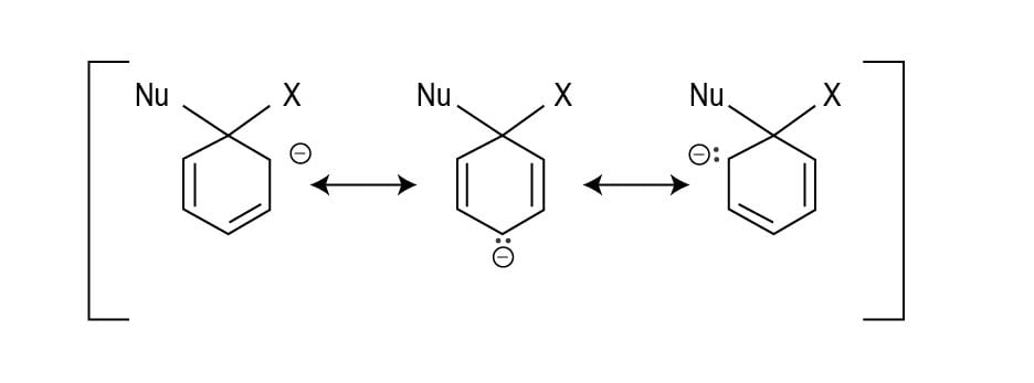 - Intermediate ion is stabilized by resonance and forms stable salts called Meisenheimer salts.