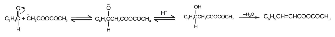 $ C_6 H_5 CHO + ( CH_3 CO)_2 O \xrightarrow{ CH_3 CO_2 Na} C_6 H_5 CH = CHCO_2 H $