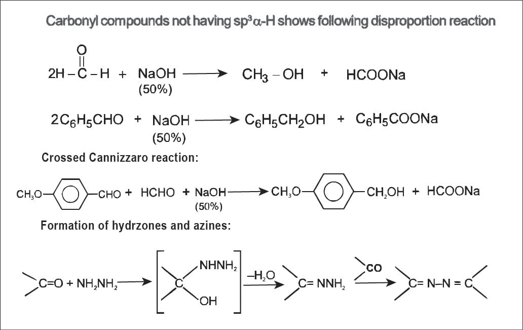 The aldehydes and ketones undergo a number of reactions due to the acidic nature of alpha-hydrogen. The acidity of $\alpha$-hydrogen atoms of carbonyl compounds is due to the strong electron withdrawing effect of the carbonyl group and resonance stabilization of the conjugate base.