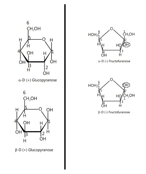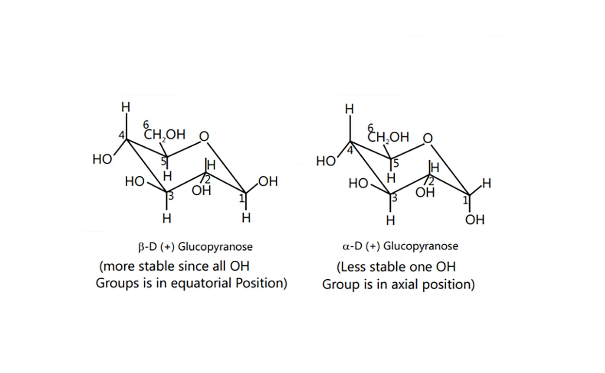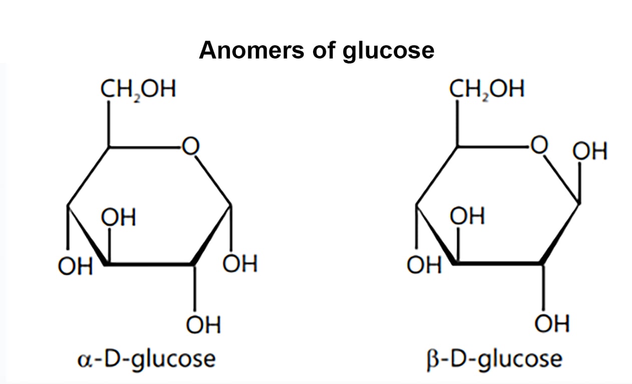 -CHO reaction with C-5 -OH group produces two anomeric glucose: In such a case, a six-membered ring, pyranose, is formed.