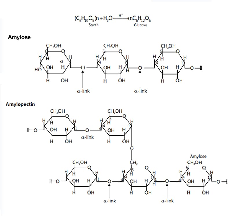 [C6H10O5]n + nH2O $\rightarrow$ nC6H12O6
