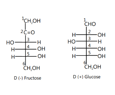 D symbolizes the comparative configuration of C-5 -OH group with relation to D-glyceraldehyde, which these are prepared from. Here, (+) and (–) refer to optical rotation. Naturally, D-glucose is (+) or dextrorotatory but D-fructose is (–) or laevorotatory.