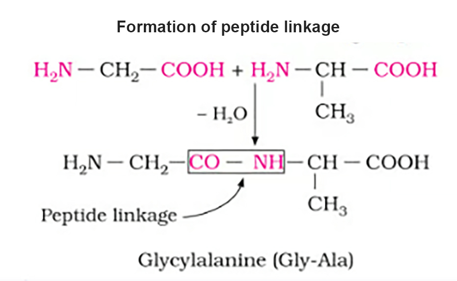 Structure of α-Amino acids: The reaction between two molecules of similar or different amino acids, proceeds through the combination of the amino group of one molecule with the carboxyl group of the other. This results in the elimination of a water molecule and formation of a peptide bond –CO–NH–. The product of the reaction is called a dipeptide because it is made up of two amino acids.