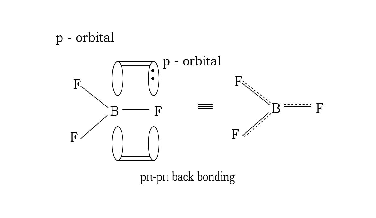 (b) Back Bonding: Back bonding generally takes place when out of two bonded atoms one of the atom has vacant orbitals (generally this atom is from second or third period) and the other bonded atom is having some non-bonded electron pair(generally this atom is from the second period). Back bonding increases the bond strength and decreases the bond length.
