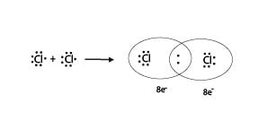 It forms by sharing of valence electrons between atoms to form molecules e.g., formation of $\mathrm{Cl}_{2}$ molecule :