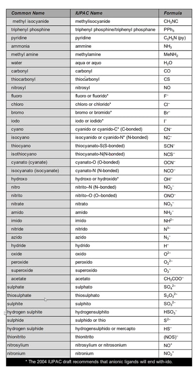 (ii) The ligands are then placed in alphabetical order. The placement of a ligand in the list does not depend on its charge.