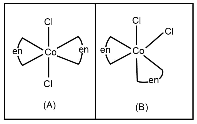 Geometrical isomers (cis and trans) of $[CoCl_2(en)_2]$