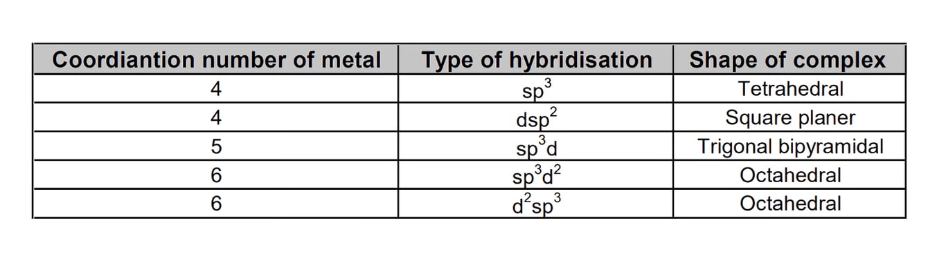 The model utilizes hybridisation of $(n-1) d, n s, n p$ or $n s, n p, n d$ orbitals of metal atom or ion to yield a set of equivalent orbitals of definite geometry to account for the observed structures such as octahedral, square planar and tetrahedral, and magnetic properties of complexes. The number of unpaired electrons, measured by the magnetic moment of the compounds determines which d-orbitals are used.