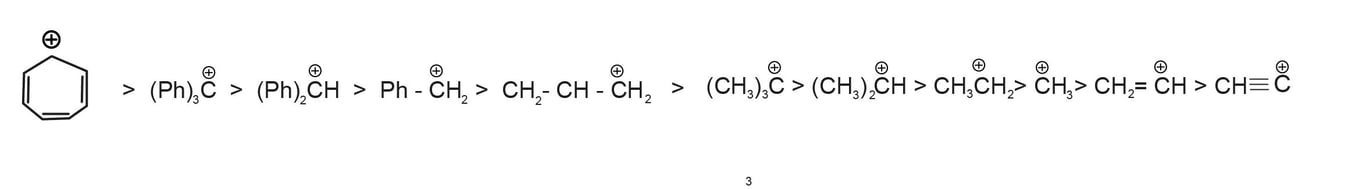 Ex. $(H_3C)_{3}C^{\bullet}>H_3 C-\dot{C} H-CH_3>H_3 C-\dot{C} H_2>\dot{C} H_3$