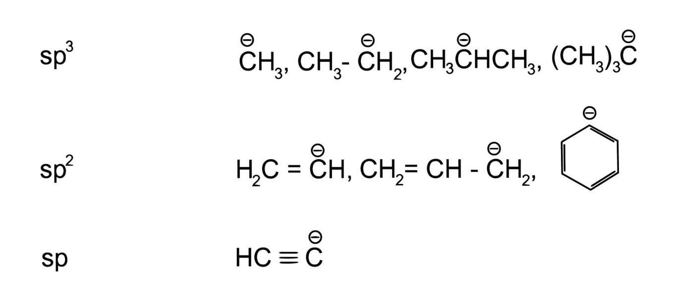 Hybridization : Hybridization of carbanion may be $sp^3, sp^2$ & $sp$
