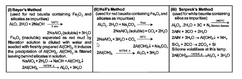 (ii) In fused melts : Aluminum is obtained by electrolysis of a fused mixture of $Al_2O_3$ and cryolite $Na_3[AlF_6]$.