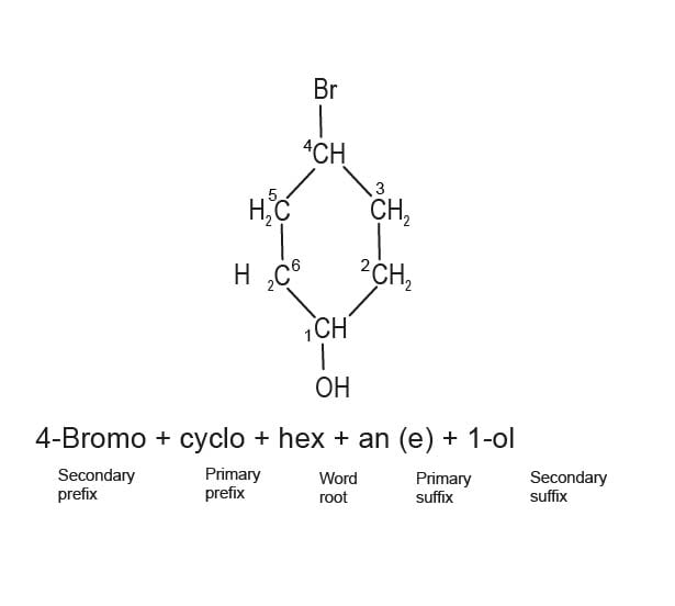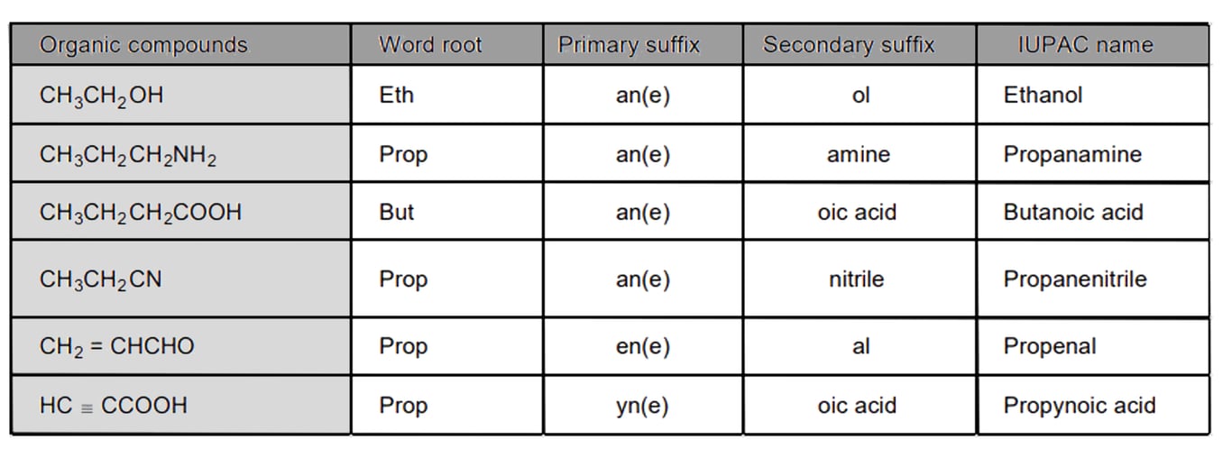 The following examples illustrate the use of word root, primary suffix and secondary suffix in naming of organic compounds.