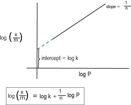 Where, x is the mass of the gas adsorbed on mass m of the adsorbent at pressure p, k and n are constants which depend on the nature of the adsorbent and the gas at a particular temperature