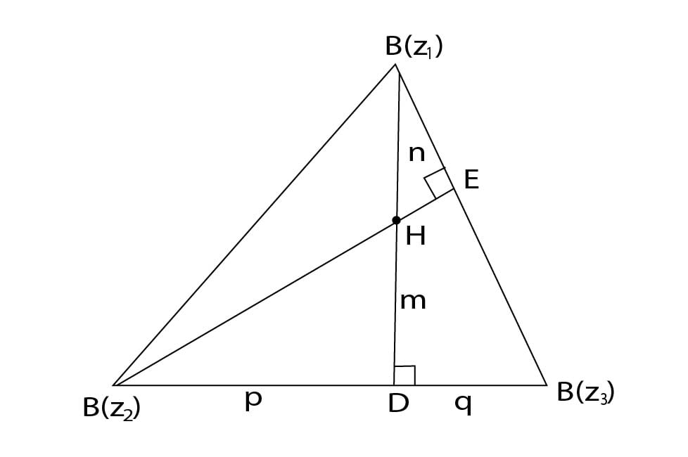 If $z_{1}, z_{2}, z_{3}$ be the affixes of the vertices $A, B, C$ respectively of a triangle $A B C$, then its orthocentere is $\frac{a(\sec A) z_{1}+b(\sec B) z_{2}+c(\sec C) z_{3}}{a \sec A+b \sec B+c \sec C}$