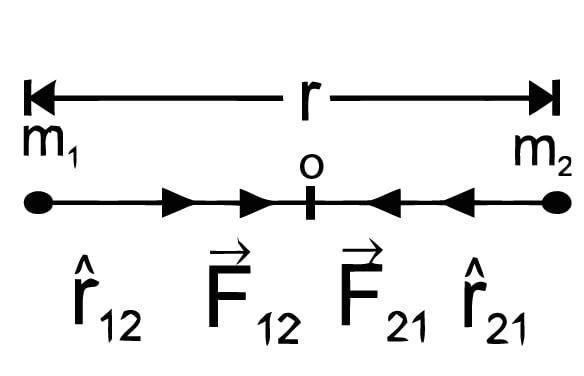 $ \vec{F_{21}} = \frac{Gm_1m_2}{r^2} \hat{r_{21}}$
