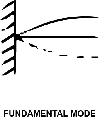 - For the fundamental mode, $L = \frac{\lambda}{4} \text{or} \lambda = 4L.$