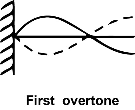 - Second overtone: $f_{2} = \frac{5}{4L} \sqrt{\frac{T}{\mu}},$